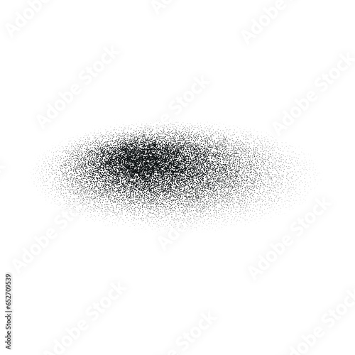 Stippled radial brush strokes. Grain dotted gradient collection. Grunge sprinkle spray texture. Dirty dust sand noise round element set. Splattered dotted overlays. Black splashed stains spots vector