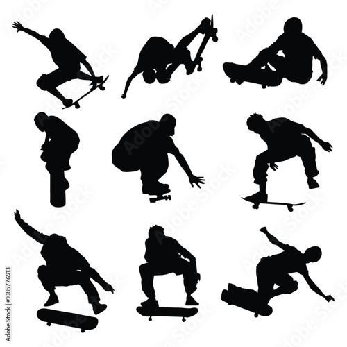 Skateboarders performing tricks on white background skateboarding silhouettes
