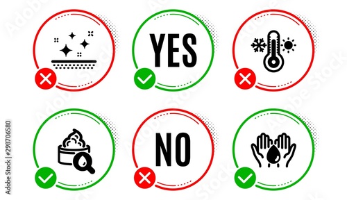 safe on skin, dermatologically tested  vector icon with cross and tick mark