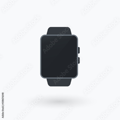 Smart watch black color vector illustration isolated on white background, digital hand clock with touchscreen display, smartwatch flat cartoon design