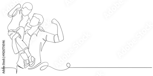 Continuous one line drawing of dad and son walking together, minimalist single line art illustration for Father's Day concept
