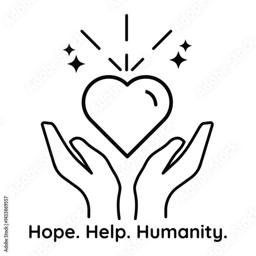 Minimal line art illustration of helping hands reaching together symbolizing compassion support unity empathy charity connection humanity kindness cooperation solidarity