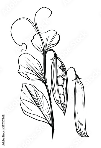 Pea plant. Hand drawn vector sketch