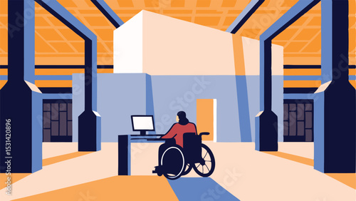 A spacious public interior with modern furniture, stylish lighting, and clean design welcomes visitors, modern flat illustration style.