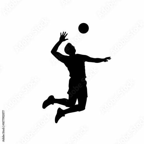 Volleyball player silhouette jumping to spike ball