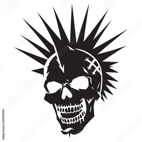 Edgy punk rock doodle set with skull and guitar, lightning and spiky eye, crown and flames. Bold hand drawn pink and black icons for alternative music culture, grunge fashion, underground art.
