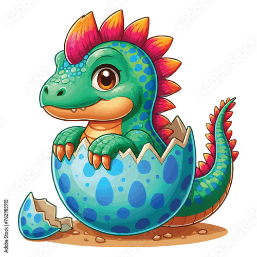 vector Cartoon baby spinosaurus hatching from egg