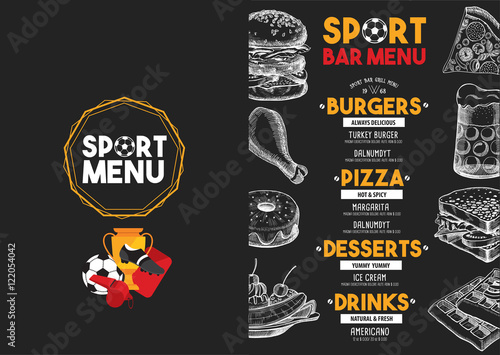 Menu sport bar restaurant, food template placemat.