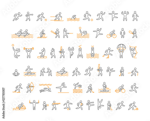 Sport Icons,  Monoline, human figure concept, The icons were created on a 32x32 pixel aligned, perfect grid providing a clean and crisp appearance. Adjustable stroke weight.