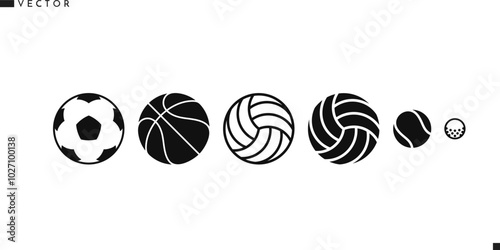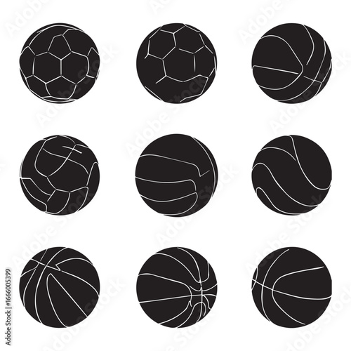 Types of sports balls such as soccer, basketball, volleyball, football, rugby and so on. Vector set of sports balls showcases the diversity of sports, perfect for athletic designs. Sport equipment.
