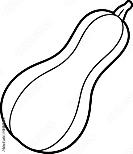 Watercolor Illustration of a Butternut Squash with a Curved Stem