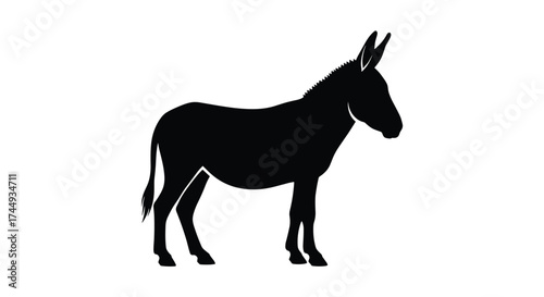 A black silhouette of a donkey standing on a white background.
