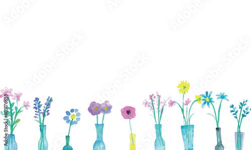水彩画。水彩タッチの花瓶に入った花イラスト。一輪挿しのベクターイラスト。北欧風花イラスト。Watercolor painting. Illustration of flowers in a vase with watercolor touch. Vector illustration of a single flower vase. Scandinavian style flower illust