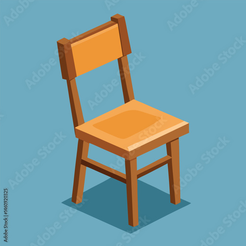 Isometric wooden furniture set featuring chairs, tables, and stool