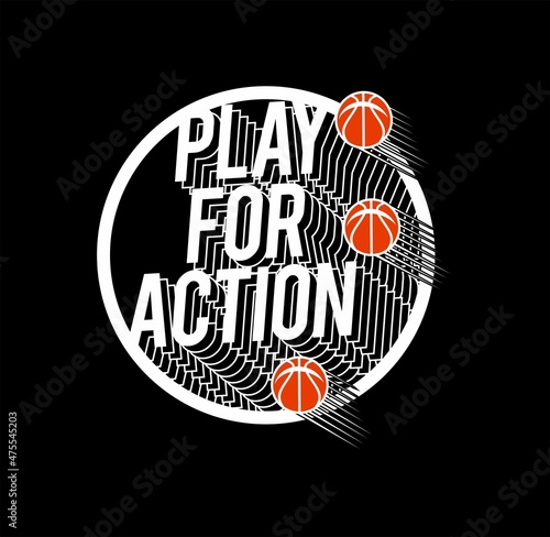 Urban style modern t-shirt with basketball players and ball. Sport style illustraton for guys.