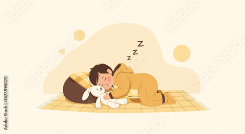Sweet Dreams Of A Little Child Sleeping Peacefully With Toys Around Illustration
