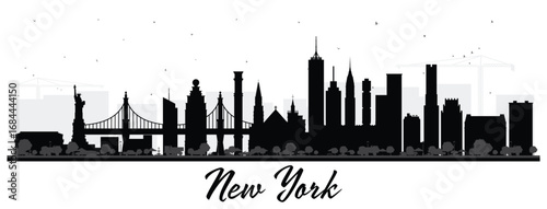 Detailed Black and White Cityscape Vector Illustration With Taxis and Buildings Silhouettes