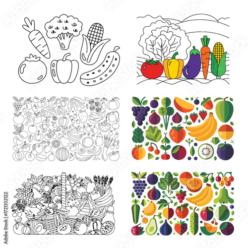 Food flat Illustration Icons set, Outline Food Vector Art Illustration Clipart. set of food Illustration bundle