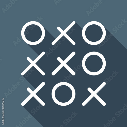 Tic tac toe game, linear outline icon. White flat icon with long