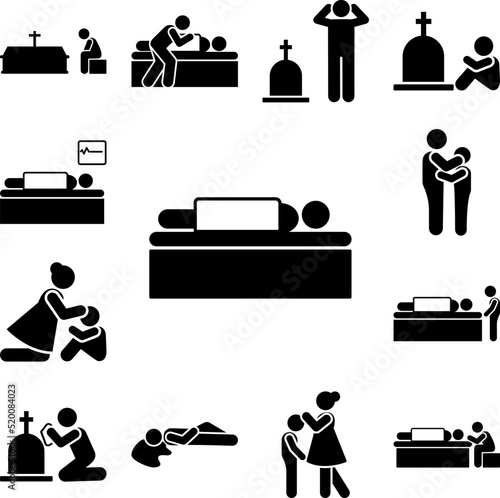 Man dead funeral bed icon in a collection with other items