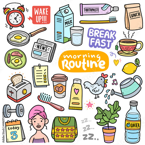Morning Routine Color Doodle Illustration