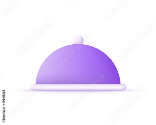 Silver cloche. Realistic metal dish with convex lid. Restaurant serving plate. Utensil template. Exquisite presentation of gourmet meal. Isolated metallic tray with dome. Vector concept
