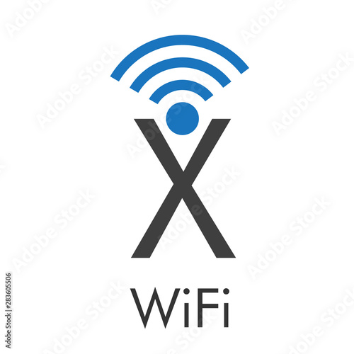 Logotipo abstracto con texto WiFi con letra X con ondas centro en azul y gris