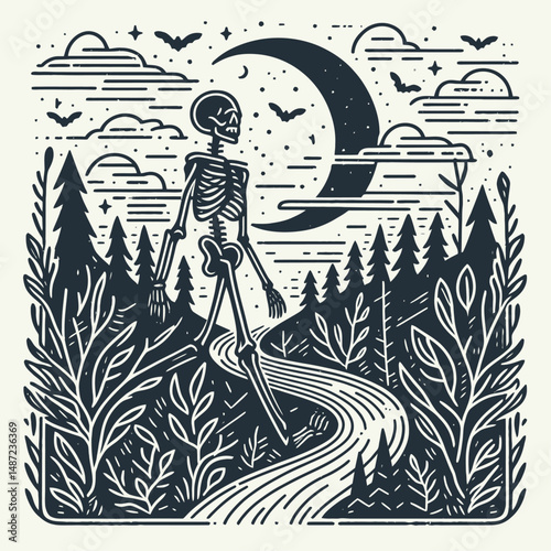 T-shirt design of outdoors stay wild adventure nature style hand drawn vintage illustration