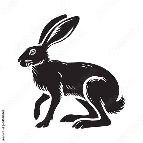 Rabbit hare black silhouette vector Illustration For abstract logo, Black and white Arabian Hare Silhouette