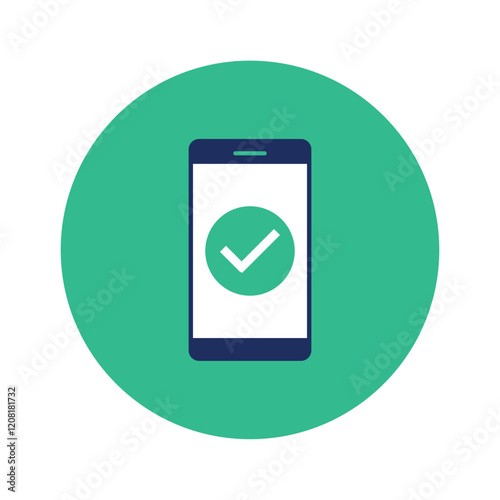 Push notification message on mobile phone on light background, smartphone mobile phone sms popup with updated check mark.