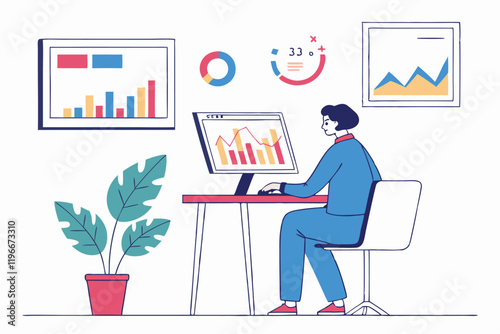 3D modelář, umělec vytvářející trojrozměrný digitální design pomocí počítačového softwaru, vektorové ploché izometrické ilustrace. Muž na volné noze, vytváření 3D modelu objektu.