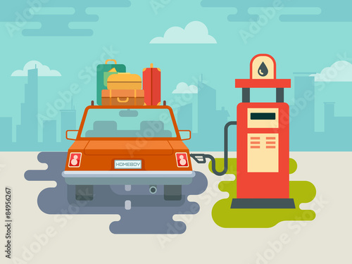 3D tisk vektorový koncept plakát v plochém stylu. Designové prvky a ikony. Průmyslová 3D tiskárna tiskne objekty ze smartphonu.