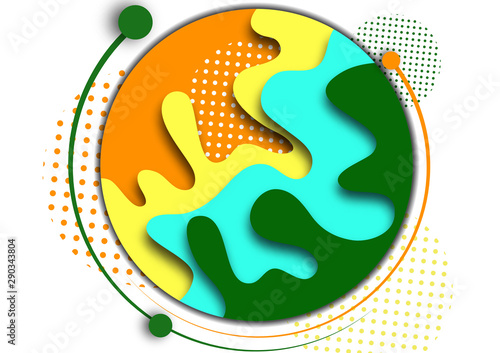 Vektor vrstvený papír řez styl číslo 5 v listí věnec, stuha s textem a čísly od 0 do 9. Pozvánka k 5. výročí, blahopřání, šablona plakátu.