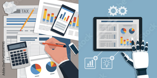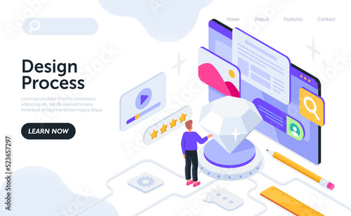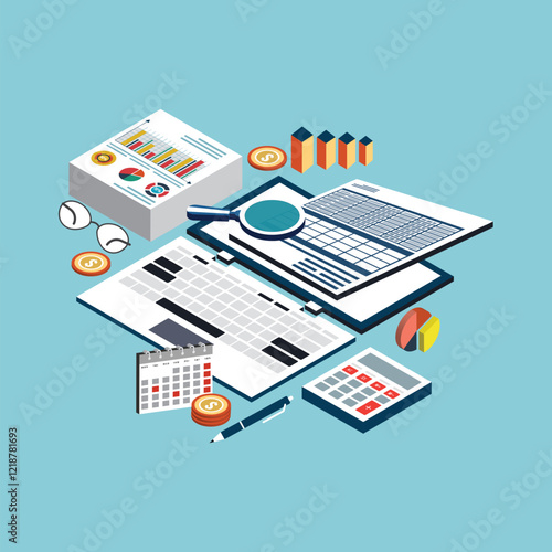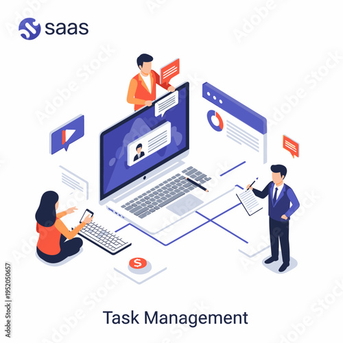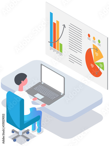 5g wifi vysokorychlostní internet fllowchart, vektorové izometrické ilustrace. Podnikatel při pohledu na měřič rychlosti internetu na obrazovce notebooku. Smartphone, satelit, router, datový cloud.