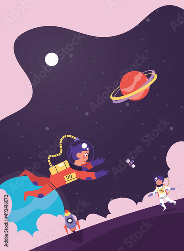 5G síť, globální vysokorychlostní internet, ploché vektorové ilustrace. Raketa létající kolem planety Země globe. Bezdrátová technologie 5g.