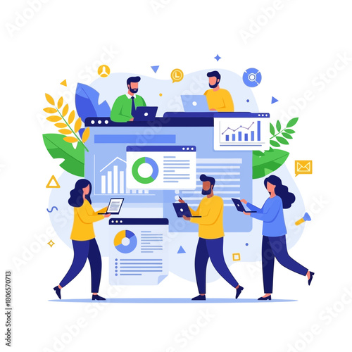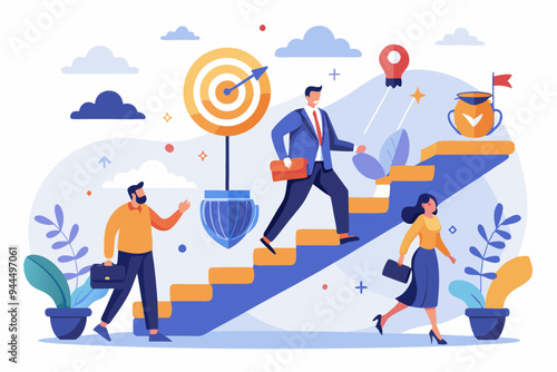 O nás, vektorový plochý design ilustrace. O nás, informační stránka společnosti s obchodní historií včetně ocenění a uznání dosaženého konceptu pro webový banner, webovou stránku atd.