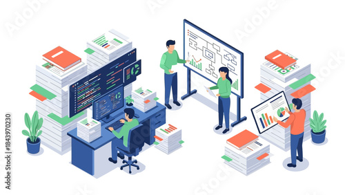 Systém řízení přístupu izometrická 3D vektorová sada. Domácí nebo kancelářský dohled, policejní ostraha a elektronický kontrolní bod, software aplikace pro mobilní telefony, ilustrace bezpečnostní schránky