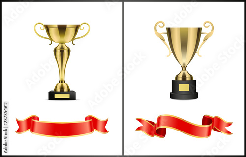 Akrylové sklo a kovové rybářské trofeje maketa set, vektorové izolované ilustrace. Realistic fishing championship winner award, plaketa, cena na podstavci.