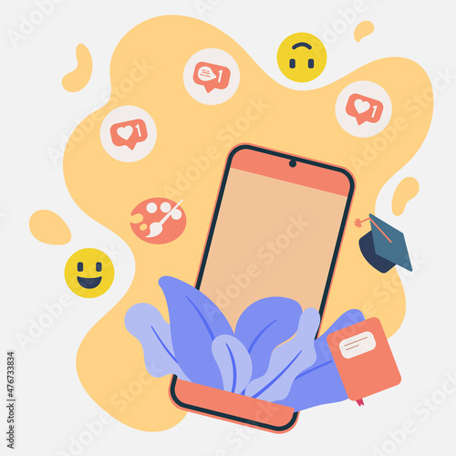 Závislý na mobilní telefon žena, ploché vektorové ilustrace. Závislost na smartphonu. Obsedantní používání smartphonu. Nomofobie. Nezdravý životní styl.
