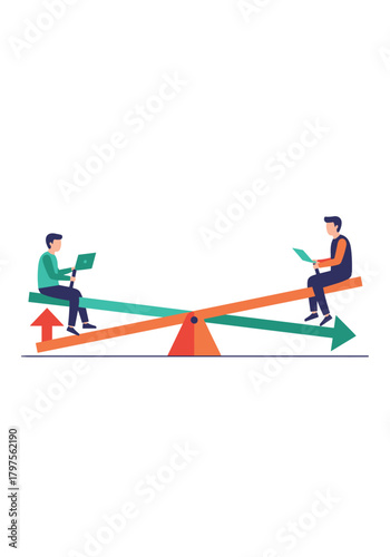 Dospělý pár kyvné na houpačce vektorové ilustrace. Izolované mladý muž a žena baví na hřišti na bílém pozadí
