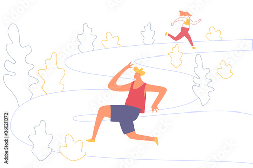 Mladí lidé se baví při skákání na trampolíně, vektorové ilustrace. Trampolína pro dospělé, sportovní a rekreační koncept pro webový banner, webovou stránku atd.