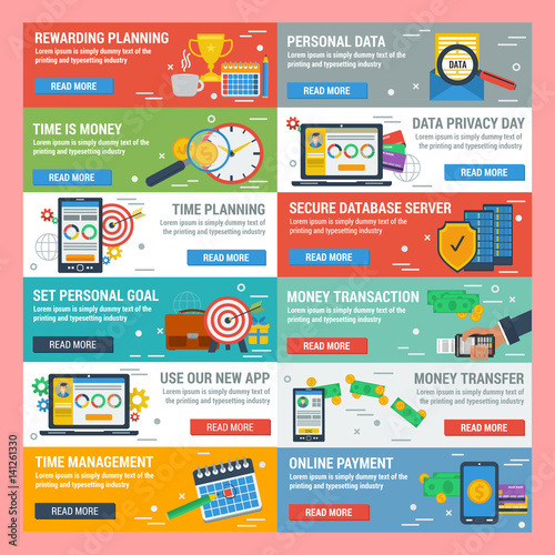 Horizontální šablony webových bannerů s vizuálním reklamním marketingem a propagací internetových produktů. Vektorová ilustrace kreativních koláží s plochou čárou pro záhlaví webových stránek pro prodej reklam