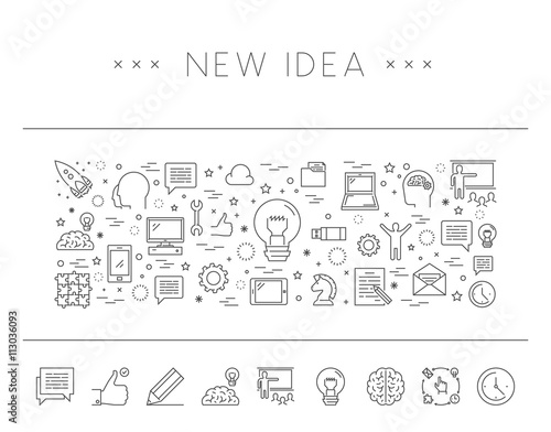 Kreativní reklamní vektorové ikony. Propagace produktu koláž s klasickými tištěnými marketingovými prvky a moderní reklamou, jako jsou bannery, billboardy, autobusová reklama, přímá zpráva, kontextová reklama
