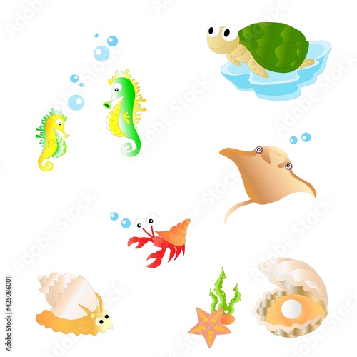 Letecký pohled na různé tropické ostrovy různého tvaru a tvaru ve vodní hladině oceánu vektorové ilustrace. Exotická pláž u moře pro dovolenou, turistické místo určení