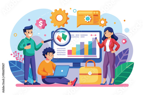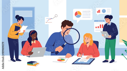 Vstupní stránka vektoru umělé inteligence. Týmová práce na futuristické laboratoři s high-tech ilustrací. Virtuální realita pro hluboké učení a úspěšný koncept obchodní finanční strategie