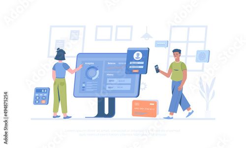AI Pracuje lépe než lidské, ploché vektorové ilustrace. Robot stroj a obchodní žena pracující na počítačích a označení kontrolního seznamu. AI vs. lidská Produktivita. Roboti nadřazenost.