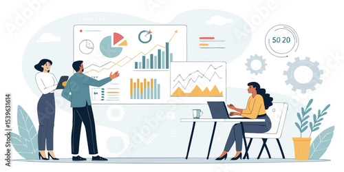 Mikro znaky klimatizace technici instalace obrovské klimatizace, vektorové ilustrace. Složení instalace a údržby klimatizace pro webový banner, webovou stránku atd.
