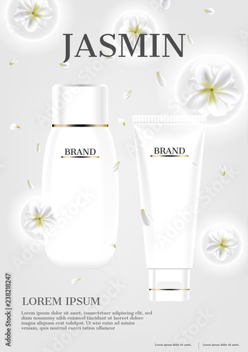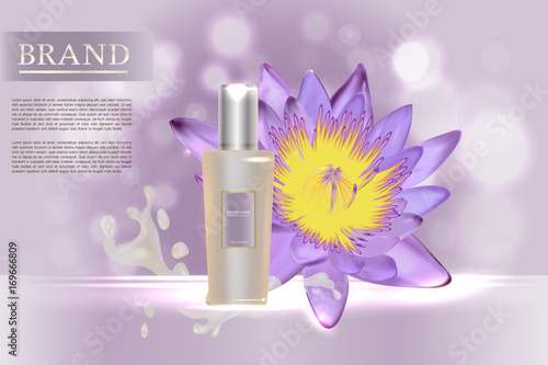 Bílý prázdný osvěžovač vzduchu balení láhev, aroma stick maketa set na displeji pódium, papír řezané květinové pozadí, vektorové ilustrace. Osvěžovač vzduchu pro domácnost chemické reklamy šablony.