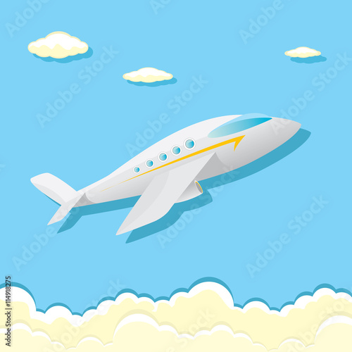 Letadlo na obloze kreslení duha nad mrakem vektorové ilustrace. Letadlo cestovní pozadí v papíru cut art craft stylu. Flight adventure on holiday dovolená koncept