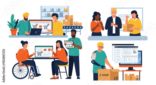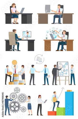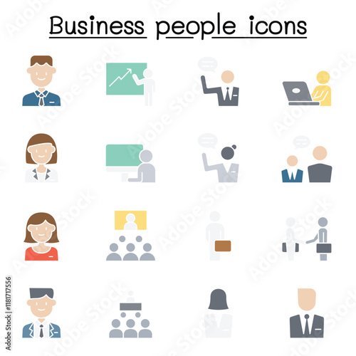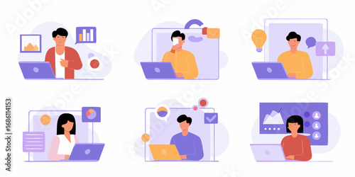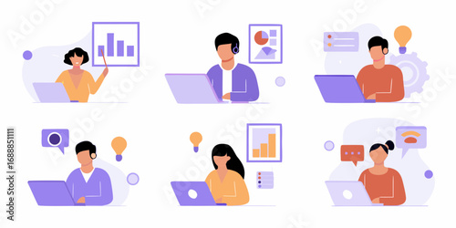 Letištní lidé vektorová ikona nastavená s pilotem, letuškou, počítadlem vstupenek, agentem rampy a cestujícími, kteří provádějí online rezervaci vstupenek, procházejí bezpečnostním kontrolním stanovištěm na letištním terminálu. Plochý design.